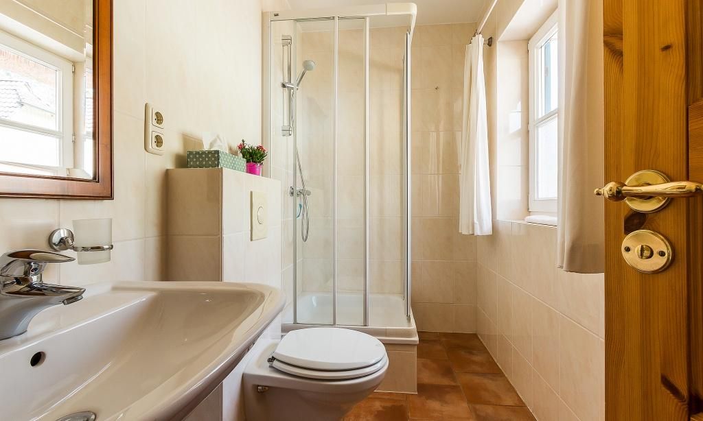 Im Außenbereich befindet sich eine Steinterrasse mit Mobiliar und Blick ins Grüne. Durch eine Sichtschutzwand zur anderen Haushälfte getrennt, kannst du hier deine Privatsphäre genießen. Ein feststehender Grill im Garten kann gemeinschaftlich genutzt werden. Dir steht außerdem zwei PKW-Stellplätze zur Verfügung.