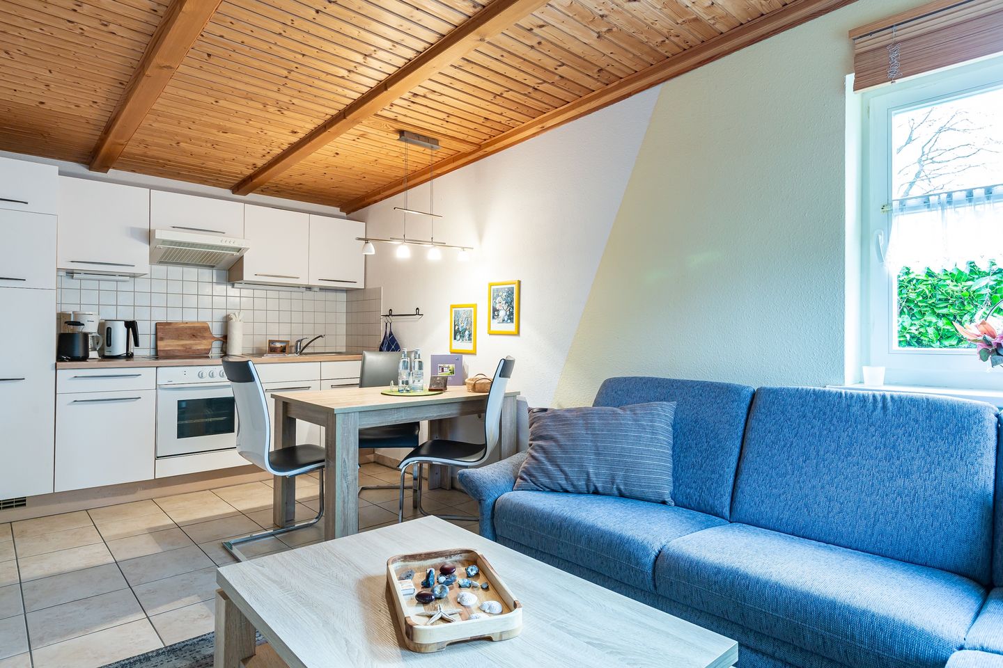 Die Lage des Bungalows ist besonders reizvoll: Ganz nah am Prerowstrom und dem Hafen gelegen, erreichst du die Ostsee in etwa 15 Minuten zu Fuß. Das Zentrum von Prerow ist ebenfalls nur rund 20 Minuten per pedes entfernt. Die Umgebung besticht durch ihre Ruhe und Idylle sowie die direkte Anbindung an das Rad- und Wanderwegenetz – ideal für aktive Auszeiten inmitten der Natur. Hier genießt du eine perfekte Kombination aus Erholung und Freizeitangeboten in einer der schönsten Regionen an der Ostsee.
