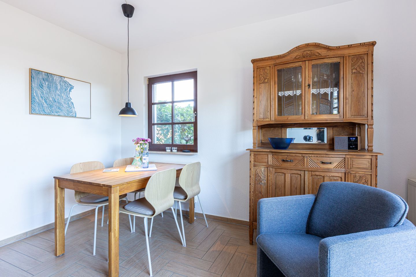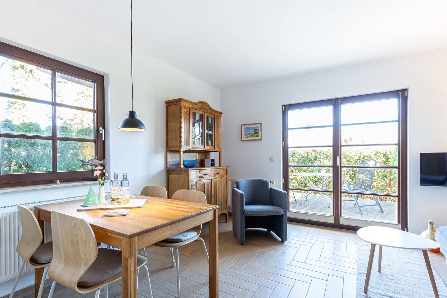 Die gemütliche Erdgeschosswohnung in einem reetgedeckten Fachwerkhaus bietet einen erholsamen Rückzugsort nur wenige Schritte von der Ostsee entfernt.