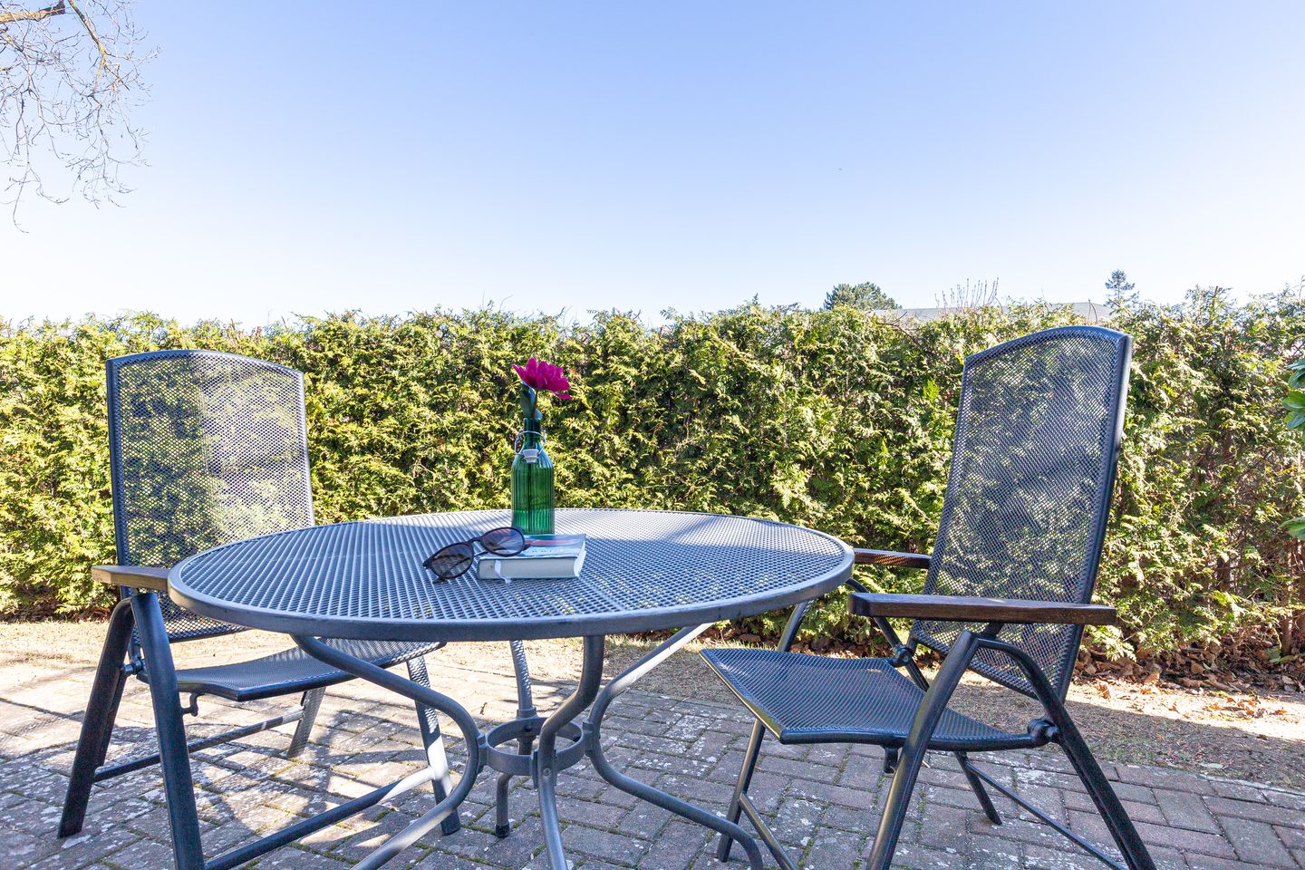 Zur Wohnung gehört eine kleine Terrasse, die zu entspannten Stunden im Freien einlädt. Hier kannst du die frische Ostseeluft genießen und den Urlaub in angenehmer Atmosphäre ausklingen lassen.