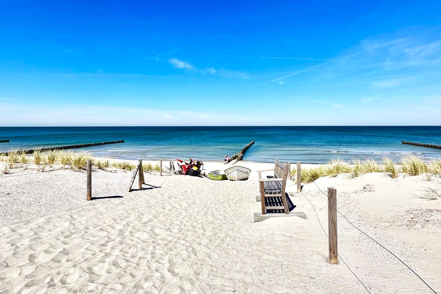 Beste Lage in Ahrenshoop: Direkt gegenüber dem Kunstmuseum liegt die Ferienwohnung in einer kleinen Anlage mit drei reetgedeckten Häusern. Nur wenige Schritte führen hinauf zum Hohen Ufer, zur beeindruckenden Steilküste und zum Ostseestrand. Supermarkt, Bäcker, Restaurants und Cafés sind bequem zu Fuß erreichbar. Auch Fahrradverleih und frischer Fisch befinden sich in unmittelbarer Nähe und sorgen für einen entspannten Urlaub ohne lange Wege.