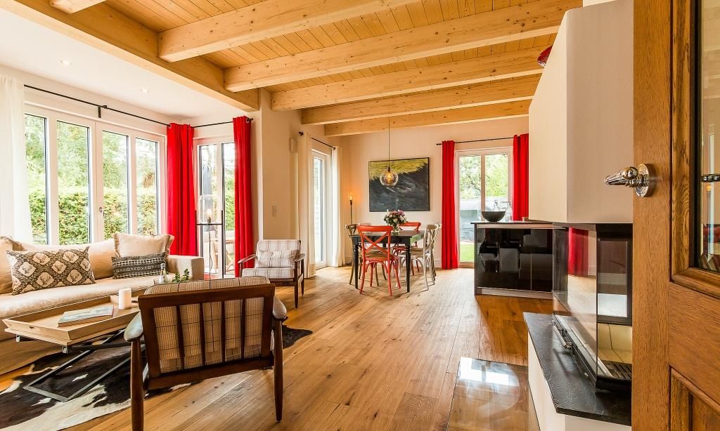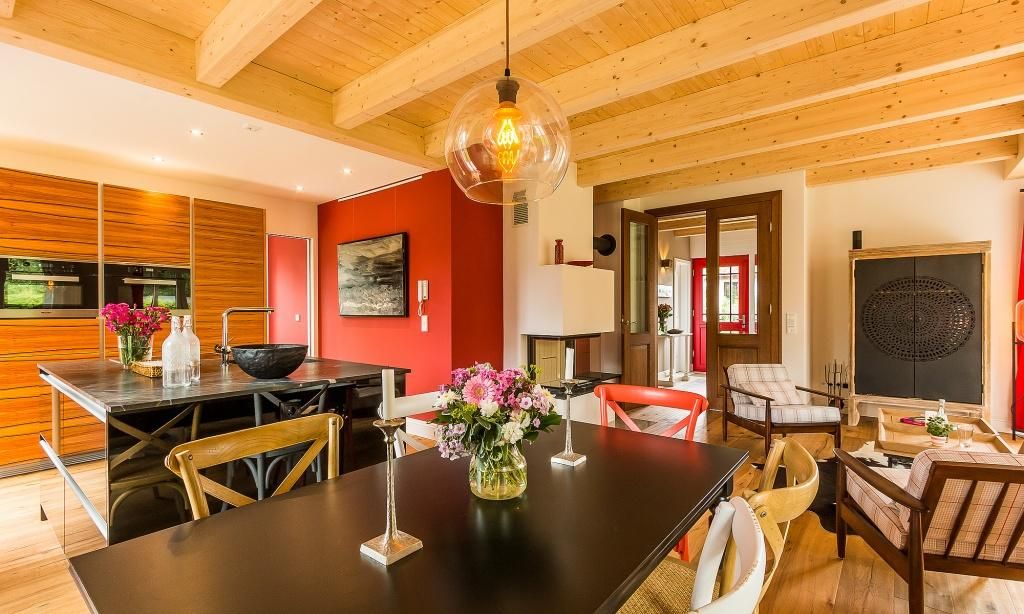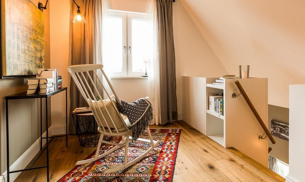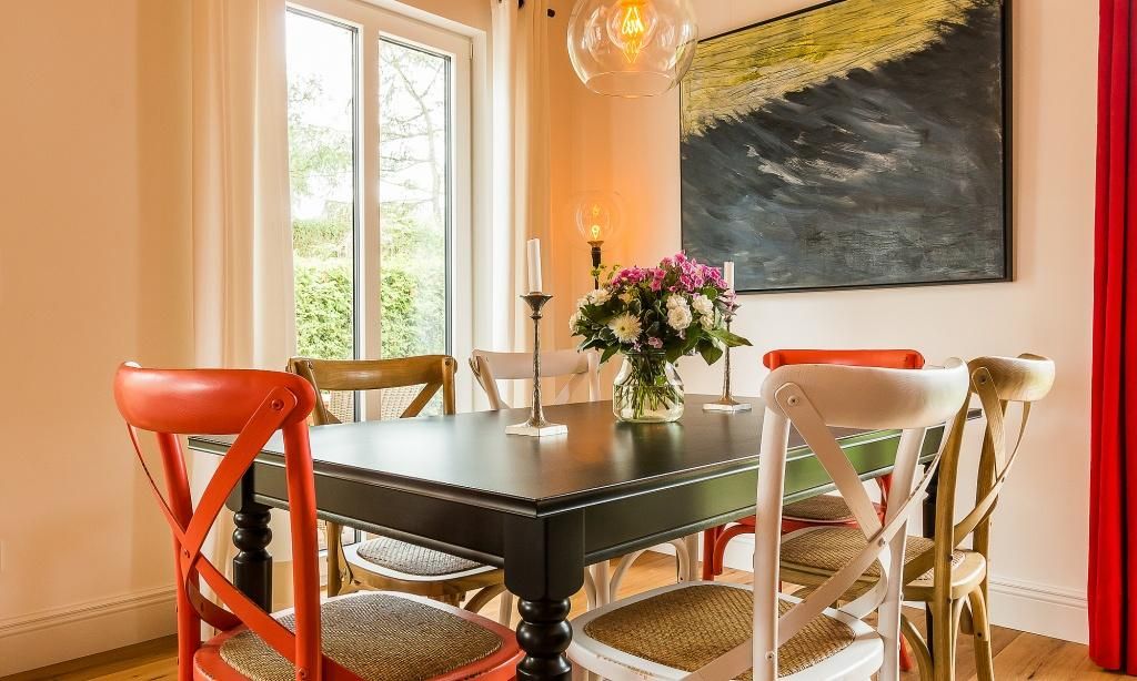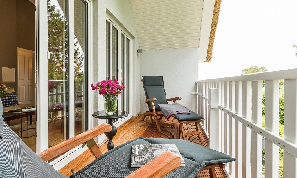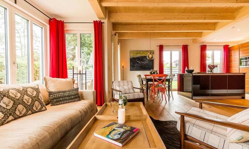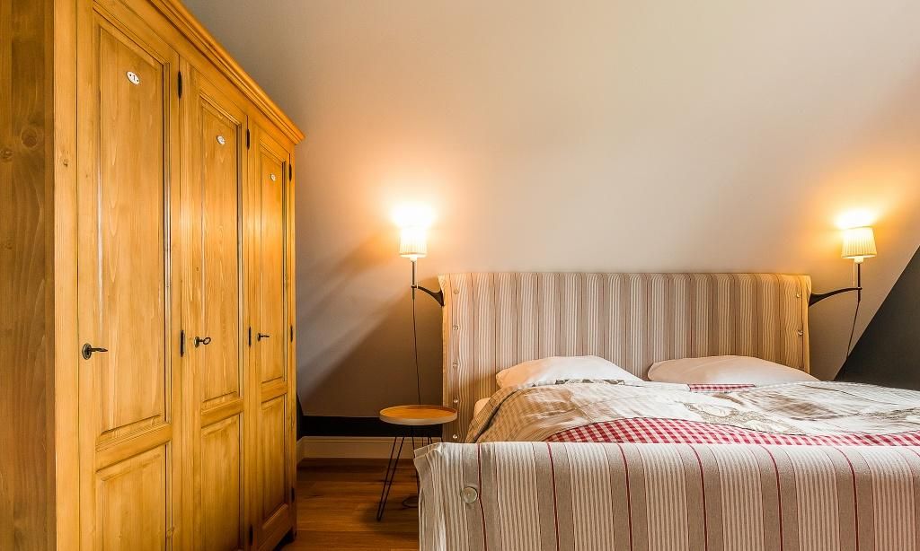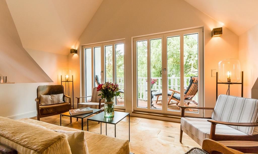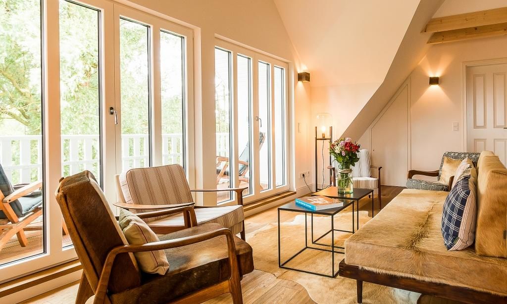Im fischlandtypischen Stil erbaut, versprüht schon die Außenansicht des Hyggelig Hus Urlaubsfeeling pur. Auch der Innebereich begeistert mit dem geschmackvollen und individuellen Stilmix aus dänischen Vintage-Unikaten, Industrial- und Landhausdesign. Im Erdgeschoss erwartet dich neben der Diele der großzügige und liebevoll eingerichtete Wohnbereich mit einem Kamin. Der Eichenboden verleiht dem Raum zusätzlich Gemütlichkeit. Die offene Premium-Echtholz-Einbauküche mit Kochinsel und hochwertiger Küchenausstattung (Miele, Braun und Villeroy & Boch) lässt garantiert das Herz jedes Kochbegeisterten höher schlagen. Der Essbereich schließt sich der hochwertigen Küche an. Ein Schlafzimmer, ausgestattet mit einem Doppelbett, ein separates WC sowie ein Hauswirtschaftsraum befinden sich ebenfalls im Erdgeschoss. Eine entspannte Auszeit findest du auch im hauseigenen Spa mit Sauna und Rainshower-Dusche. Die Gartendusche, die über den direkten Zugang von der Sauna aus erreichbar ist, sorgt für den Extra-Kick. Im Obergeschoss erwartet dich eine großzügige Lese-Galerie mit Austritt auf den herrlichen Balkon. Ein Schlafzimmer mit Doppelbett, ein Kinderzimmer mit zwei Einzelbetten, ein traumhaftes Bad mit freistehender Badewanne und Rainshower-Dusche sowie ein separates WC befinden sich ebenfalls auf der oberen Etage. Handgefertigte Dekoelemente und ausgewählte Designermöbel im gesamten Haus machen dieses wunderschöne Ferienobjekt zu einem ganz besonderen Quartier für Design-Fans und Individualisten.