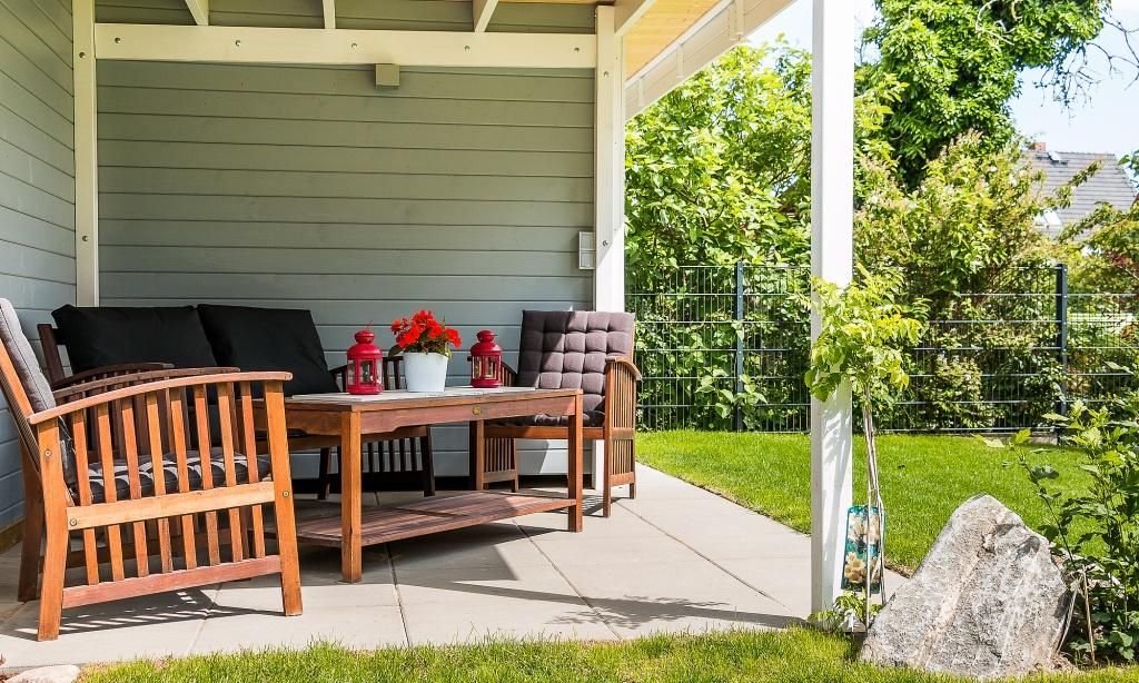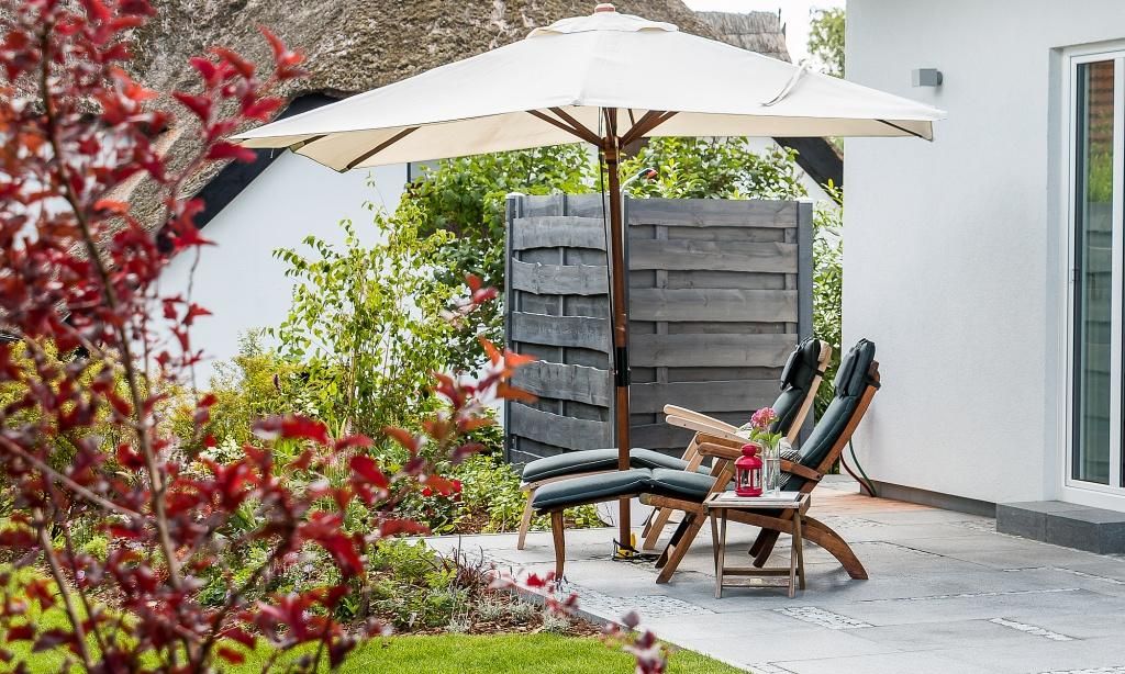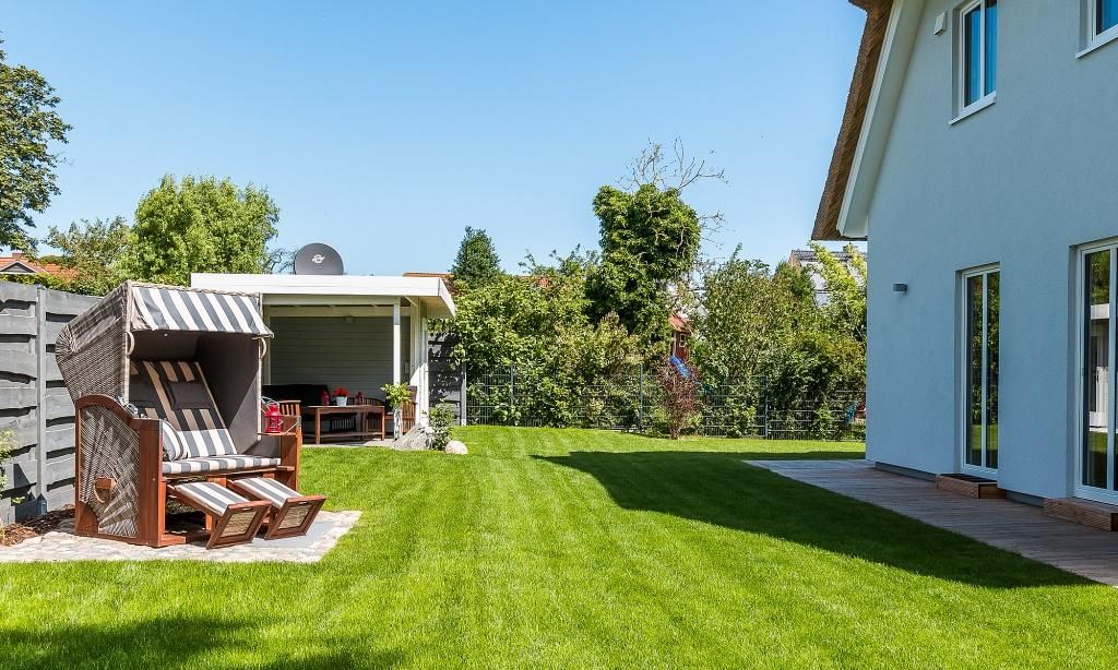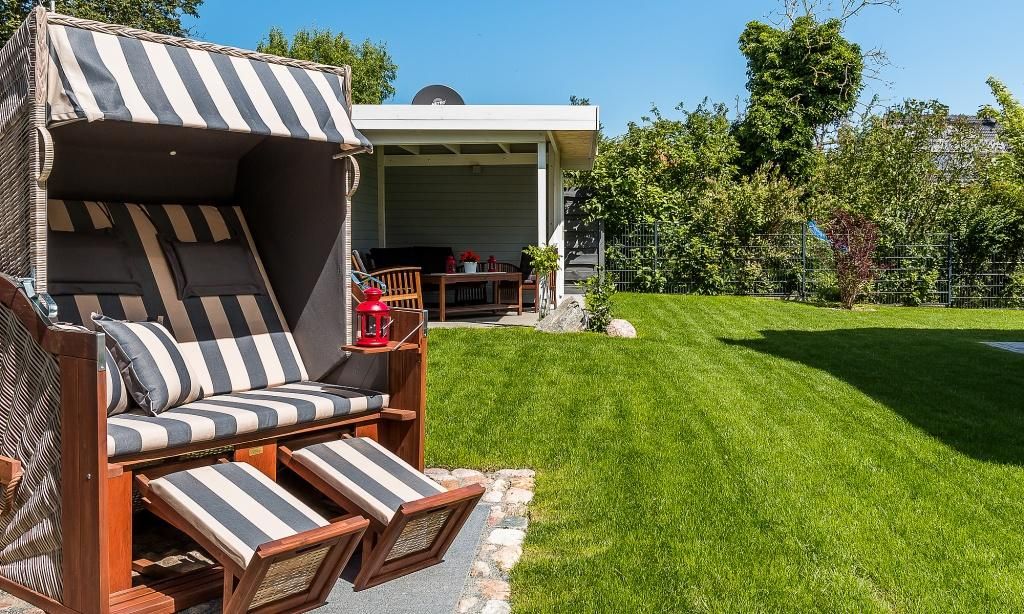Der Außenbereich begeistert mit einem 750 Quadratmeter großen Grundstück, dass liebevoll angelegt wurde. Neben der überdachten Sitzecke im Garten erwartet dich auch ein Strandkorb am Haus und vier Sonnenliegen. Die Terrasse in Südlage, der Grillplatz mit Gasgrill und weitere Sitzmöglichkeiten runden das Wohlfühl-Ensemble perfekt ab. Zum Ferienhaus gehören zwei PKW-Stellplätze sowie eine hauseigene Ladestation für E-Autos.