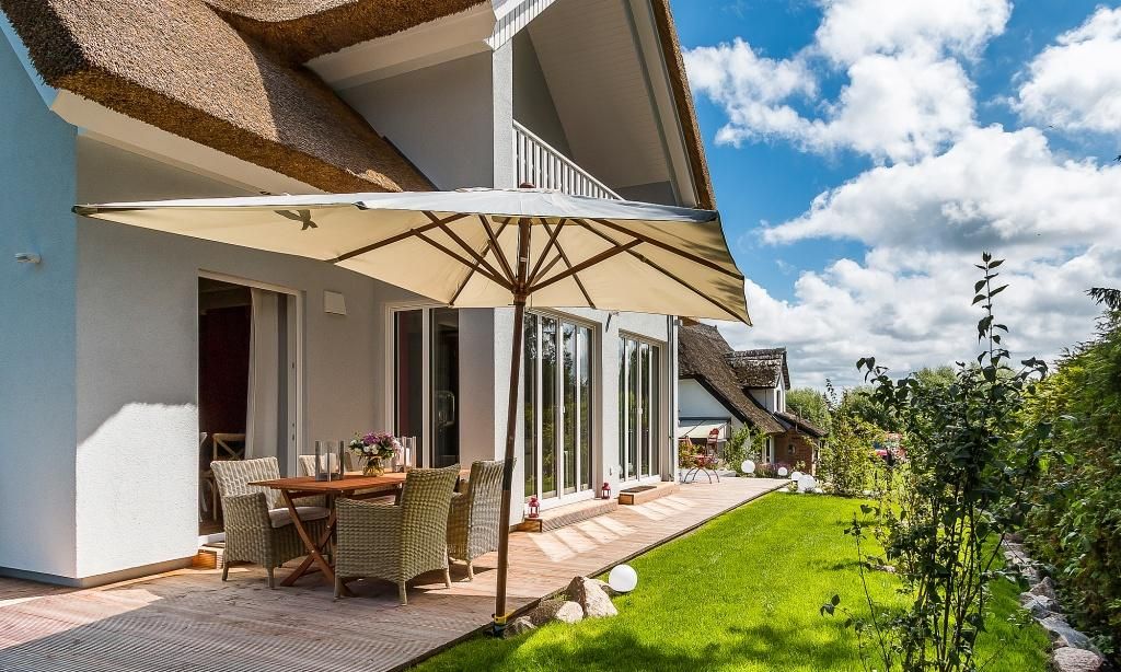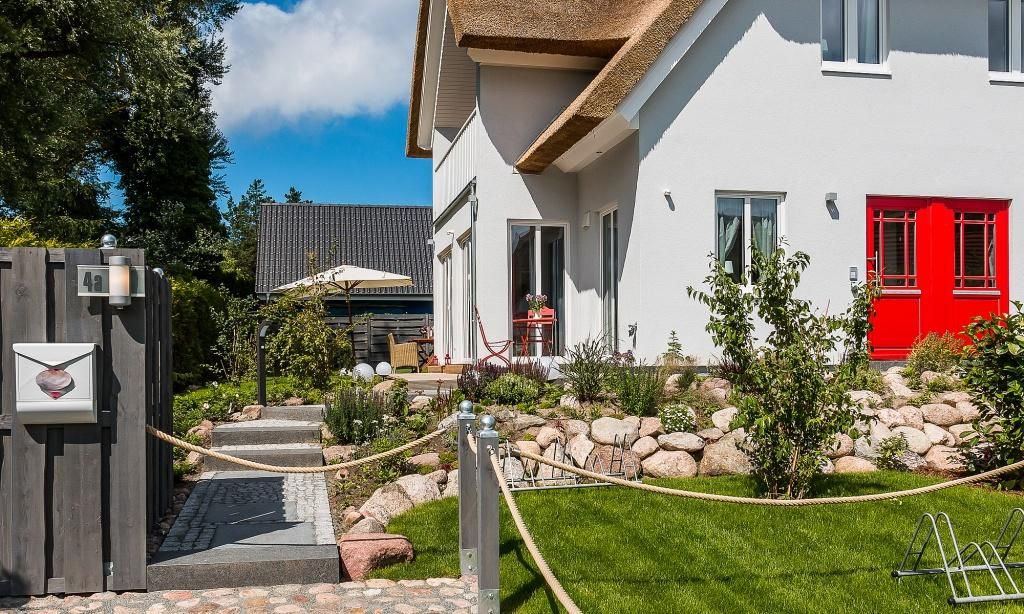 Dieses großzügige Ferienhaus auf einem zauberhaften Gartengrundstück gegenüber der idyllischen Niehäger Islandpferde-Weide wird dich begeistern. In ruhiger Lage, nur ein paar Schritte vom Bodden entfernt, genießt du deinen wohlverdienten Urlaub in besonderer Wohnatmosphäre unter Reet. Starte ausgedehnte Radtouren vom Radweg aus, der direkt vor dem Grundstück entlang führt. Knapp einen Kilometer entfernt befindet sich das Steilufer mit der Saisontreppe, die bei günstigen Wetterbedingungen von Mai bis September aufgestellt wird. Hier kannst du bei einem traumhaften Panoramablick die schönsten Sonnenuntergänge beobachten. Der Strandzugang der Pappelallee in Niehagen ist 2 Kilometer entfernt.