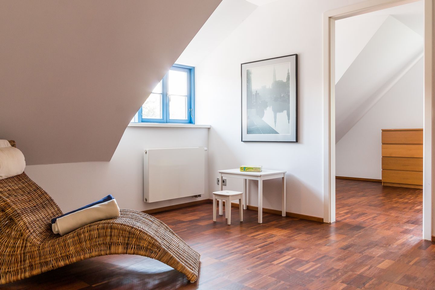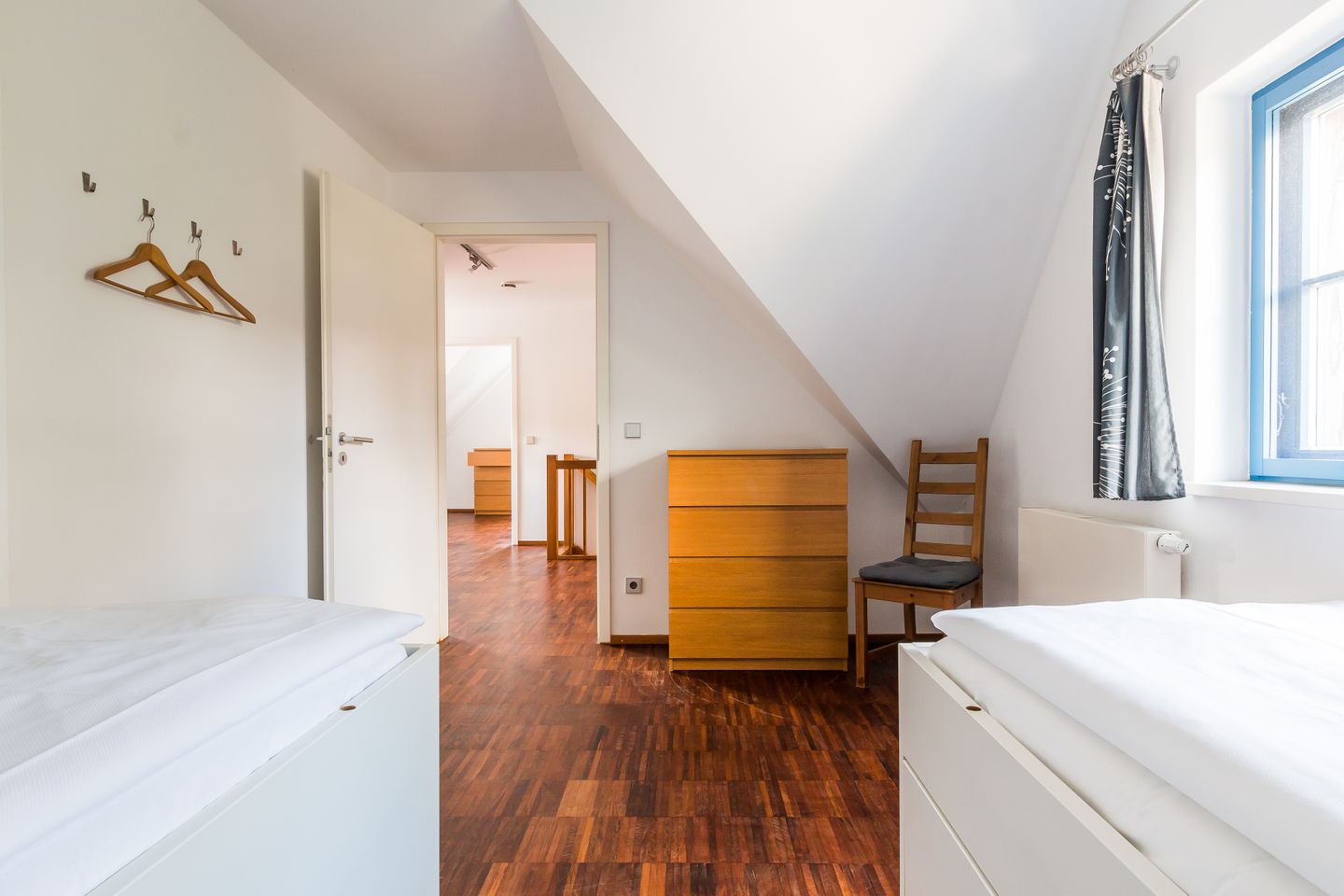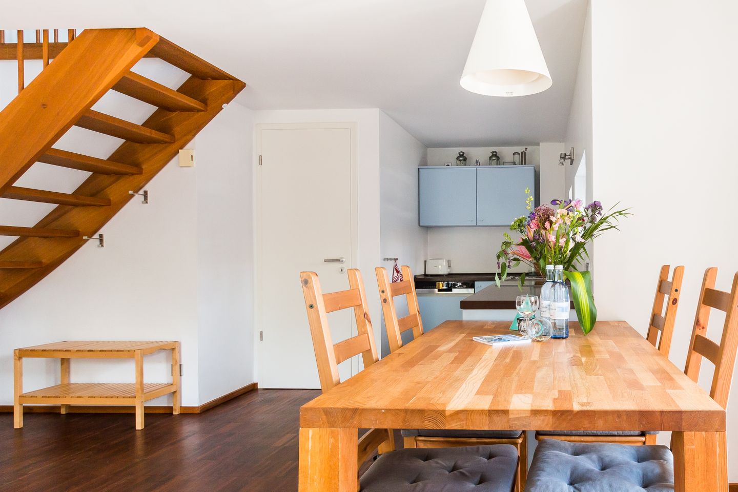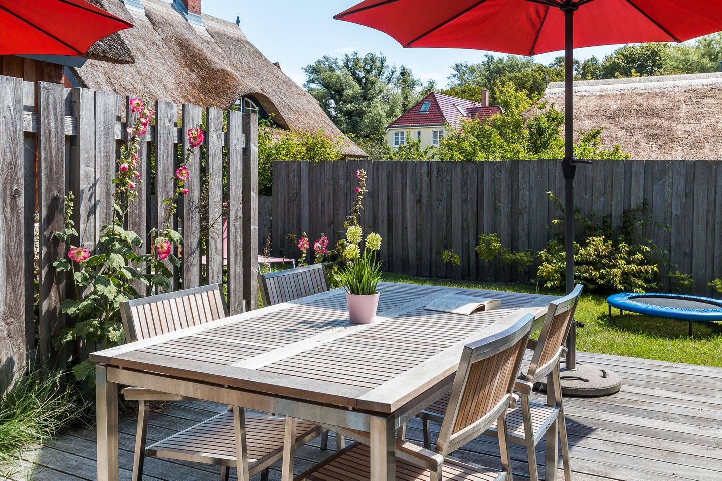 Im Außenbereich steht dir eine sonnige Holzterrasse mit Bestuhlung und ein PKW-Stellplatz zur Verfügung.