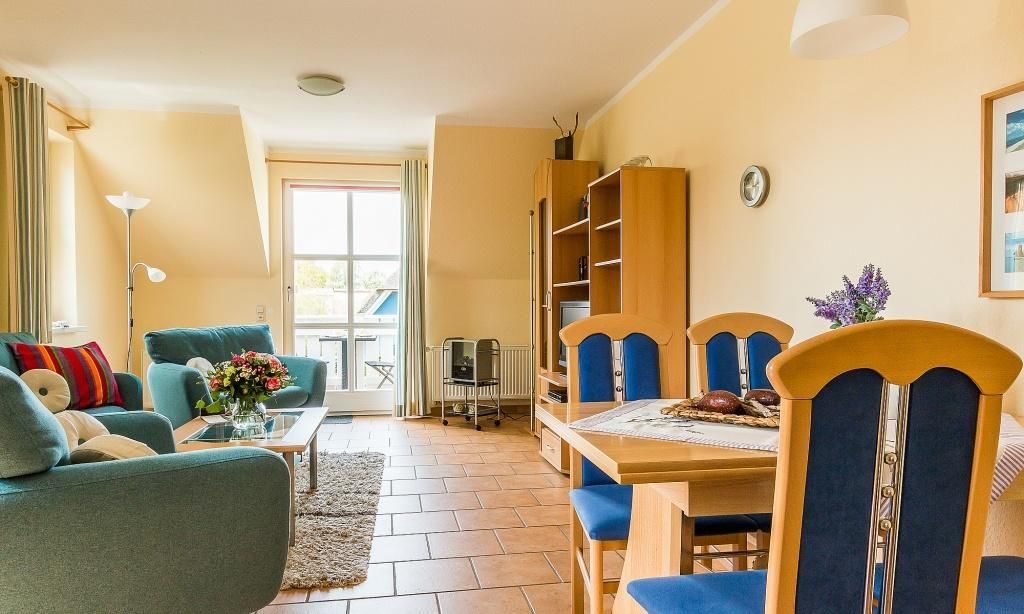 Vom Wohnbereich aus gelangst du direkt auf den Balkon, der zu entspannten Momenten an der frischen Ostseeluft einlädt. Ein PKW-Stellplatz steht dir selbstverständlich ebenfalls zur Verfügung.