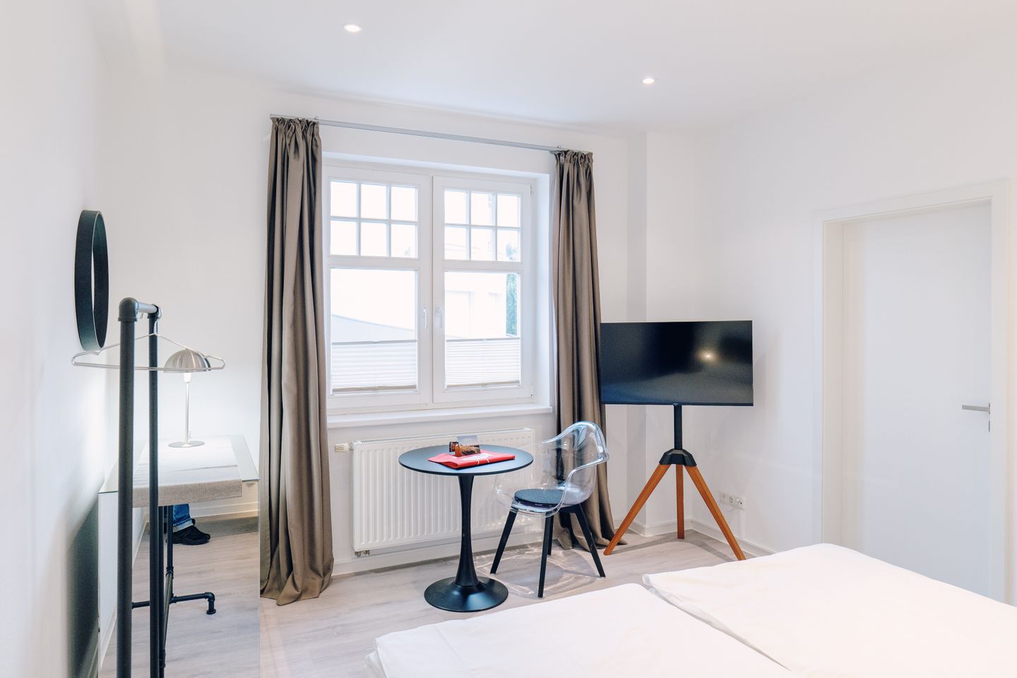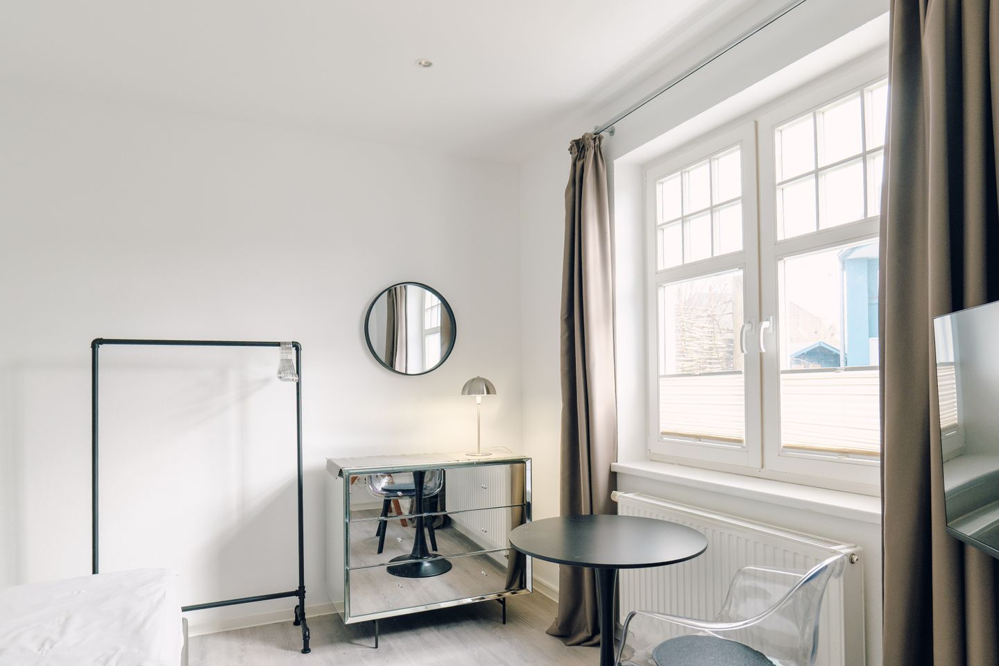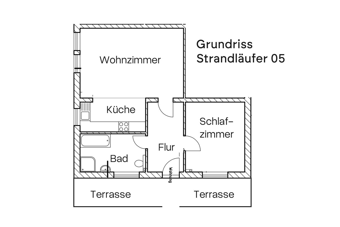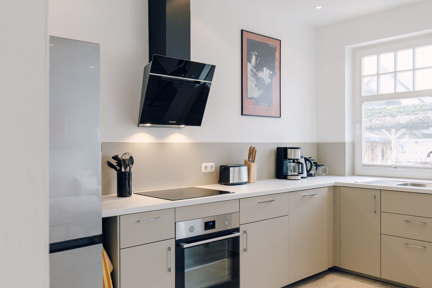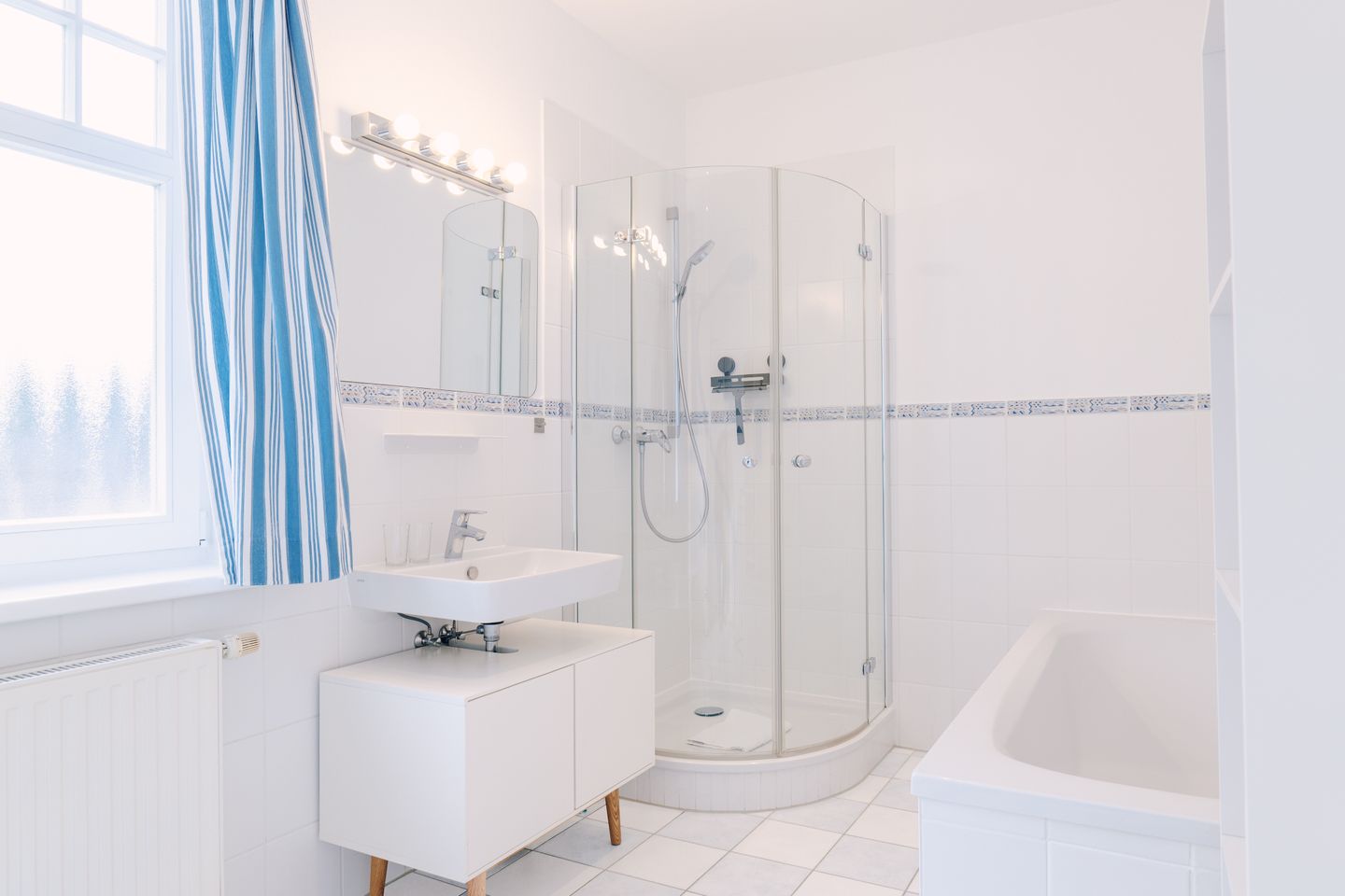 Die Ferienwohnung befindet sich im Erdgeschoss des Hauses mit insgesamt fünf Ferienwohnungen. Sie ist modern eingerichtet und verbindet klare Linien mit charmanten Retromomenten sowie hellen, sanften Farben, die für eine besonders angenehme Wohnatmosphäre sorgen.